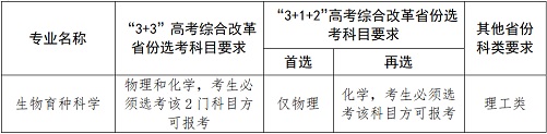 我校2023年强基计划招生专业为生物育种科学,招生专业选考科目或科类要求见下表。